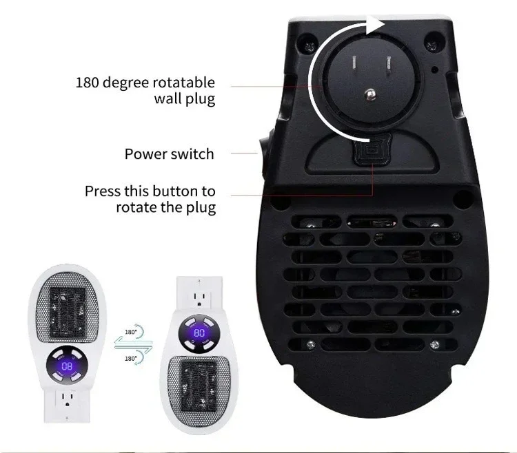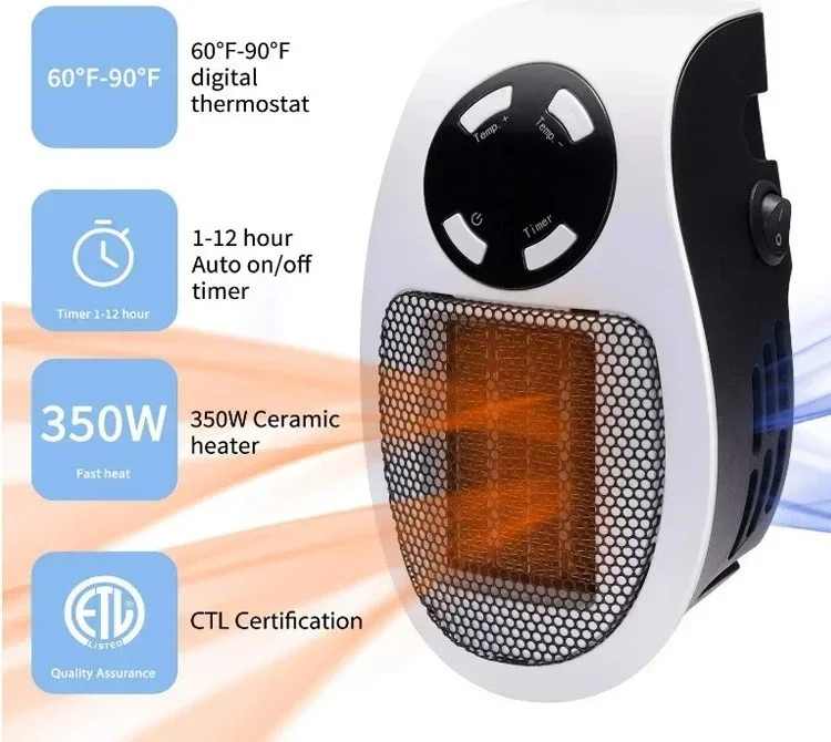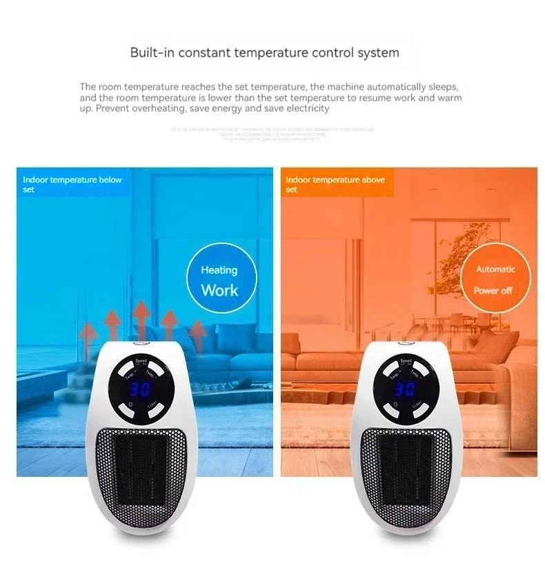 Mini Radiator Portable Heater Electric Heater Plug-in Remote Heating 500W